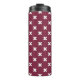 White cross stitches on mulberry thermal tumbler