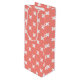 White cross stitches on peach wine gift bag
