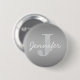 White Cursive & Grey Monogram | Editable Colours 6 Cm Round Badge