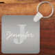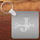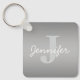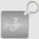 White Cursive & Grey Monogram | Editable Colours Key Ring