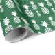 White Cute Pineapple Holiday Pattern On Green Wrapping Paper