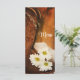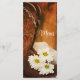 Customise the charming White Daisies and Cowboy Boots Country Western Wedding Menu with the details of the meal that you will serve at your western theme bridal shower, engagement barn party or marriage reception by adding the salad or first course, entree or second course and dessert or third course. This informal yet elegant custom ranch style wedding menu features a quaint digitally enhanced floral photograph of a pair of brown leather cowboy boots, white daisy flower blossoms, bridal veil and weathered brown barn wood.
