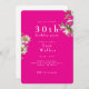 White Floral Daisies Birthday Party Invitation. Hot PInk background. Any age.