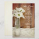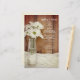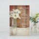 Customise the rustic chic White Daisies in Milk Bottle Barn Wedding Menu with the details of the meal that you will serve at your country ranch theme bridal shower luncheon, post wedding brunch or marriage reception farm dinner by adding the salad or first course, entree or second course and dessert or third course. Personalise it with the names of the bride and groom, event venue and date. This charming custom barn party wedding menu features a quaint floral photograph of a vintage glass milk bottle filled with white daisies and a white satin and brown barn wood background.