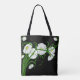 Pretty white daisies on contrasting black background, tote bag.