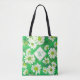 White Daisies on Green Floral Pattern Monogrammed Tote Bag