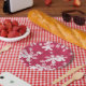 White daisies, daisies, flowers, white flowers, red, white and red, red and white, retro