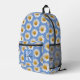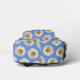 A pattern of pretty white and yellow daisies on blue background with a monogram and a custom name in decorative script.