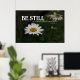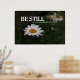 Poster with the verse from Psalm 46 that says "Be still and know that I am God" against the background of a photograph of white daisies with golden yellow centres encourages viewers to slow down and consider the spiritual side of their lives.