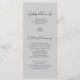 Announce the order of your marriage ceremony and timeline with the elegant White Daisy and Diamond Ring Wedding Program. This classy custom botanical wedding program features a close up floral photograph of a white daisy flower blossom, white pearl necklace and round diamond engagement ring.