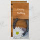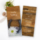 Give your guests the order of your nuptials with the charming White Daisy and Horseshoe Country Wedding Program at your informal yet elegant rural farm or ranch style marriage ceremony and reception. This rustic chic custom equine theme wedding timeline program features a quaint floral photograph of a white daisy flower blossom, rusty horseshoe, pearl necklace and bridal veil with a brown weathered barn wood background.