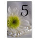 Customise these pretty White Daisy and Pearls Wedding Table Numbers and create a different card for each table at your elegant marriage reception, bridal shower or engagement garden party. These classy custom flowery table number cards feature a floral photograph of a white daisy flower blossom and white pearl necklace.