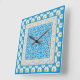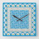 A very pretty square Wall Clock, with a mixture of three White Daisy patterns on Blue, including Daisy Chain Hearts and Circles. Part of the Posh & Painterly 'Daisy Chain' collection.