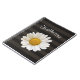 A close-up photo of a white daisy with custom name on a dark brown and almost black striped background.