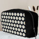 Zippered dopp kit toiletry bag that features the photo image of a pretty, white Daisy flower printed in a repeating pattern on a black background along with solid, black top and side panels. A fun, floral design! Perfect accessory bag for your toiletries for on-the-go travel!