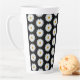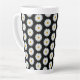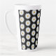 White Daisy Floral Pattern on Black Latte Mug