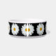 Ceramic pet food bowl for your cat or dog that features the photo image of a white Daisy flower with yellow center against a black background and printed in a repeating pattern. A lovely, floral design! Select your pet bowl size.