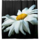 White daisy flower against dark background. Flower head with white petals and yellow disc. The flower is tilted under the blast of summer wind. Painting from a photography. Shower curtain to decorate your bathroom for fun and good mood