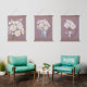 White Daisy Flowers Bouquet Rosy Brown Set of 3 Hanging Tapestry