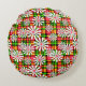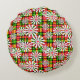 White daisy flowers on a red green chequered backg round cushion