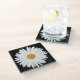 Protect your table top from water marks and stains with this decorative, glass beverage coaster that features the photo image of a pretty, white Daisy flower on a black background. A lovely, floral design!