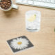 White Daisy on Black Floral Stone Coaster