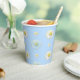 White and light blue Daisy Pattern on soft light blue background. Daisy flower illustration.