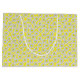 A gift bag with white daisies on a yellow background. You can choose the background colour of your preference.