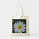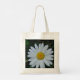 A large, white daisy bloom and dark-green background. Beautiful reusable cotton bag.