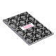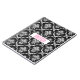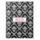Elegant white floral damask seamless pattern over black background. Touch of pink. Custom monogram