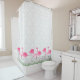 White Damasks & Pink Flamingos Illustration Shower Curtain