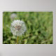 White dandelion flower on green grass poster
