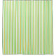 Modern stripes, a designer shower curtain in a greens, yellows, and white. The white stripe can be changed to any colour. Stylish bath decor.