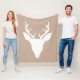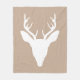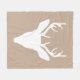 White Deer Head Silhouette On Beige Fleece Blanket