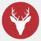 White Deer Head Silhouette On Red Classic Round Sticker