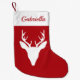 White Deer Head Silhouette On Red With Custom Name Small Christmas Stocking