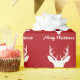 Destei's original white silhouette design of a deer head with large antlers on a red background colour. There is also a personalizable text area that now reads: "Merry Christmas".