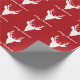 White Deer Head Silhouette On Red With Custom Text Wrapping Paper