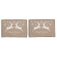 Destei's original silhouette design of two deer facing each other together with some decorative snowflakes. The background colour is beige. There are also two personalizable text areas.