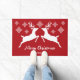 White Deer Silhouettes On Red With Snowflakes Doormat