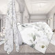 A soft and elegant pure white and greenery wedding neck tie featuring a watercolor painted scenery of white Desdemona Roses and silver eucalyptus greenery.
