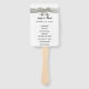 Wedding Program Fans are a popular choice for summer ceremonies. It's a stylish way to keep wedding guest cool and provide the important details as you say “I do”. Holding your event outside? It comes as no surprise that people will be in need of something to keep them cool. That's why a personalised wedding program hand fan is the perfect gift to give away at your wedding. Personalise and create by adding, and changing the text in the fields provided. You can change font style, size, and colour, as well as paper type.