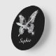 White Diamond Butterfly, DIY Script Name, Black Round Clock