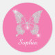 White Diamond Butterfly, Script Name, Pink Classic Round Sticker