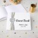 Elegant diamond heart with a white ribbon decorate this guestbook. Wedding guest books are fun for both the couple and their celebrants. Invite attendees to leave you well-wishes at your reception, and you're guaranteed to have a keepsake to look back on for years to come. Plus, your guests will get to leave their mark on your event, not to mention put in writing whatever they didn't have a chance to express in person on the big day. Personalise the book by changing the text in the fields provided. You can change font style, size, and colour.