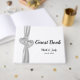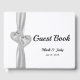 Elegant diamond hearts with a white ribbon decorate this guestbook. Wedding guest books are fun for both the couple and their celebrants. Invite attendees to leave you well-wishes at your reception, and you're guaranteed to have a keepsake to look back on for years to come. Plus, your guests will get to leave their mark on your event, not to mention put in writing whatever they didn't have a chance to express in person on the big day. Personalise the book by changing the text in the fields provided. You can change font style, size, and colour.