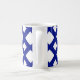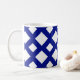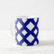 A bold, geometric pattern of large and small white diamonds on a navy background. The dark blue forms a lattice which separates the diamond shapes.