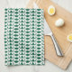 White Dog Bone Herringbone Pattern Hunter Green Tea Towel