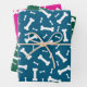 White Dog Bones Design Wrapping Paper Sheets with customisable background colours.