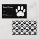 White Dog Paw Print On Black Custom Business Card